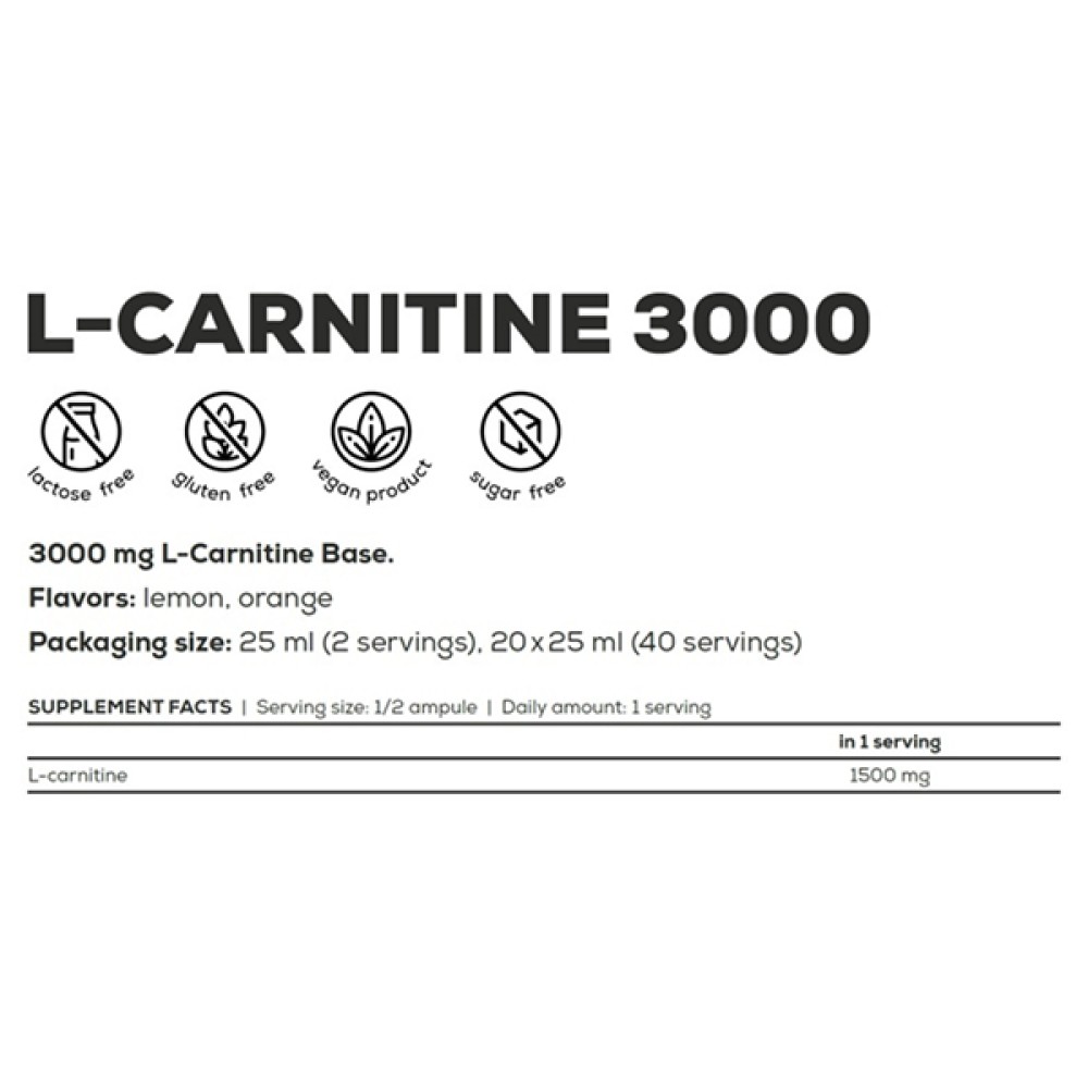 BioTech USA L-Carnitine Ampule 3000 Lemon 20х25 ml — это концентрированный аминокислотный комплекс в формате шота, содержащий высокую дозировку L-карнитина (3000 мг) для поддержки энергетического обмена, повышения выносливости и оптимизации процессов жиросжигания.