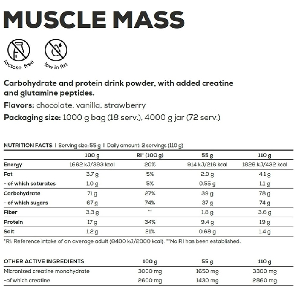 BioTech USA Muscle Mass Vanilla 4000 g — это высококалорийный гейнер, разработанный для эффективного набора мышечной массы и восполнения энергетических затрат. Продукт сочетает углеводы и белок, обеспечивая организм необходимыми нутриентами для роста и восстановления мышц.