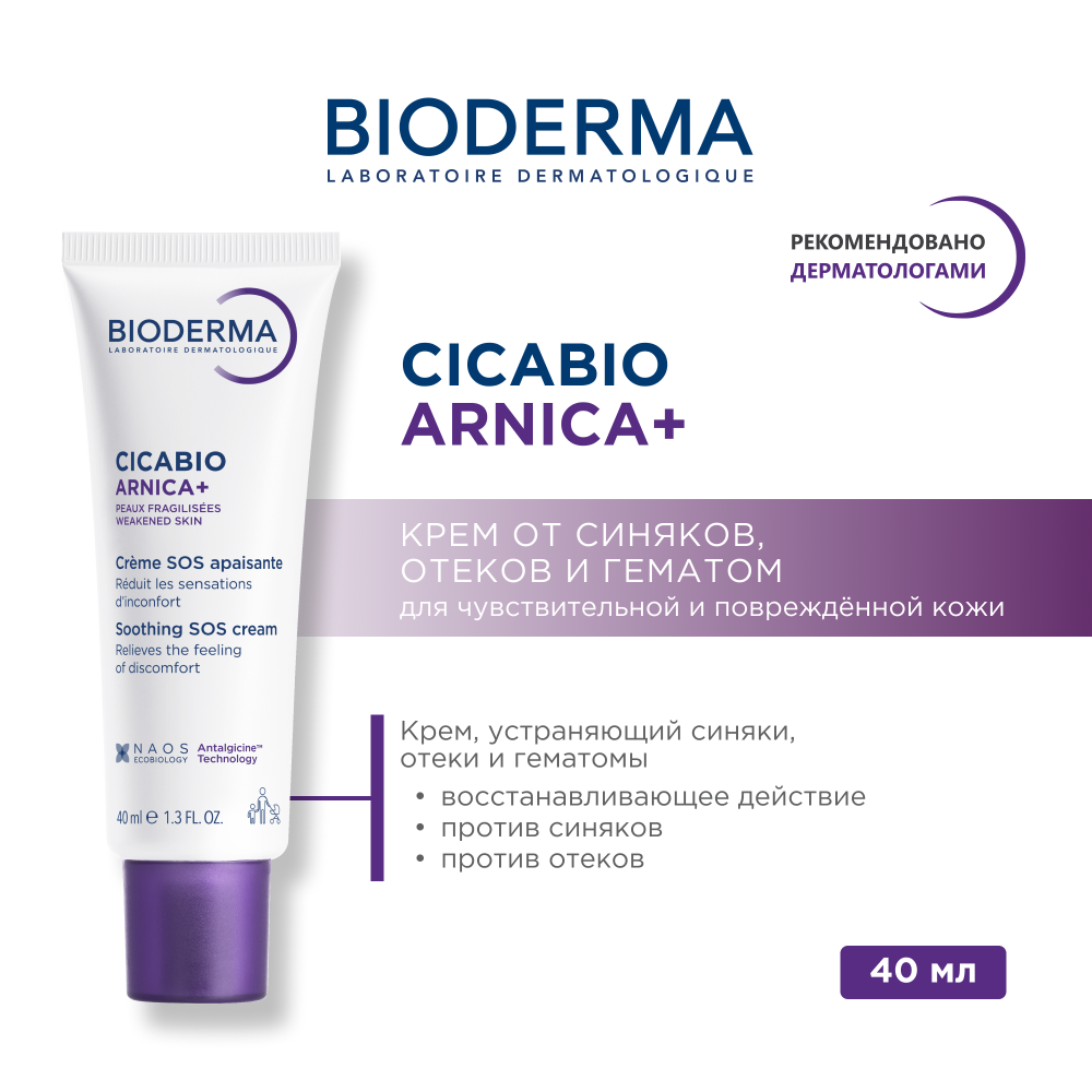 Крем Bioderma Cicabio Arnica Plus обеспечивает восстанавливающий уход для кожи лица и тела. Благодаря содержанию экстракта арники крем быстро уменьшает синяки и устраняет отечность. Содержит комплекс активных веществ Анталгицин способствующий скорейшему заживлению травмированной кожи. Может использоваться до и после проведения эстетических процедур.
