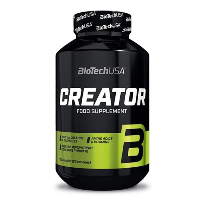 BioTech USA CreaTor 120 капсула — бұл күшті, төзімділікті және бұлшықет массасының өсуін арттыруға арналған жоғары тиімді креатин кешені. Өнім жаттығу нәтижелерін жақсартуға және қалпына келтіруді тездетуге тырысатын спортшылар үшін өте қолайлы.