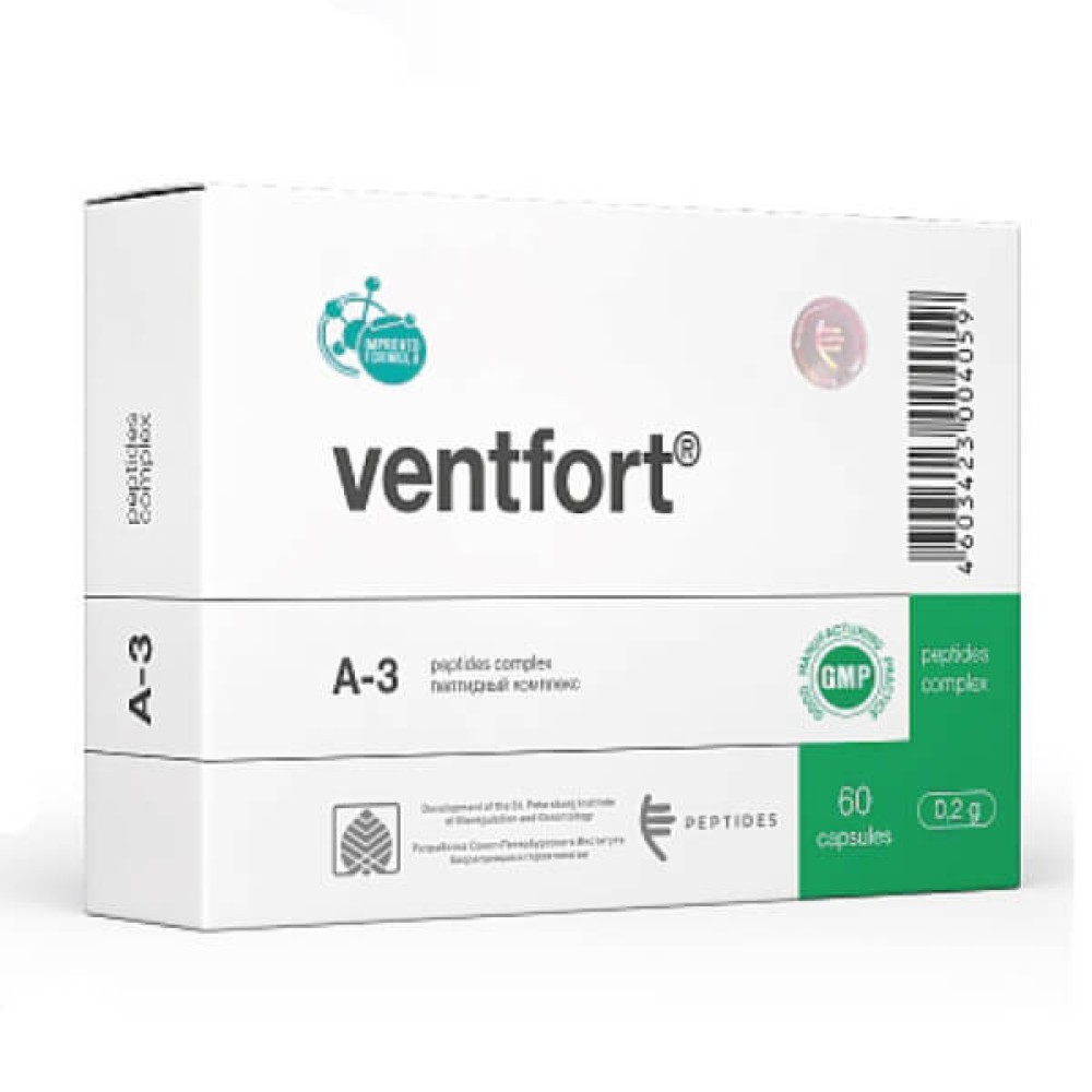 Peptides Вентфорт 60 caps — қан тамырларын қолдауға, микроциркуляцияны жақсартуға және созылмалы қан ағымының бұзылуынан зардап шегетін тіндерді қалпына келтіруге бағытталған мамандандырылған пептидтік кешен. Препарат капиллярлардың жұмысын қалыпқа келтіруге көмектеседі, гипоксияның әсерін азайтады, органдардың трофикасын жақсартады және жасқа байланысты өзгерістер процестерін баяулатады.