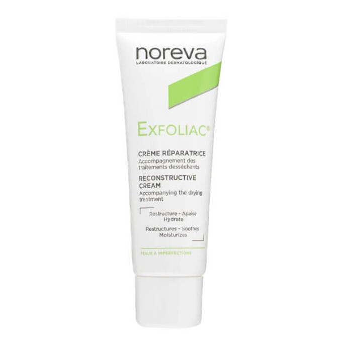 Noreva Exfoliac Repair Восстанавливающий крем для лица 40 мл — специализированное средство для ухода за проблемной и жирной кожей в период восстановления после дерматологических процедур, агрессивных косметических воздействий и лечения акне (включая системную и наружную терапию).
