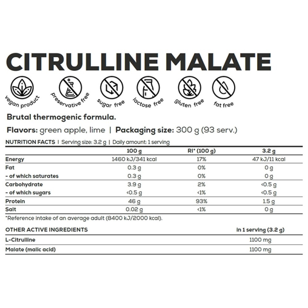 BioTech USA Citrulline Malate Green Apple 300 g — предтренировочный аминокислотный комплекс, созданный для повышения выносливости, усиления мышечного пампа и улучшения результатов тренировок.