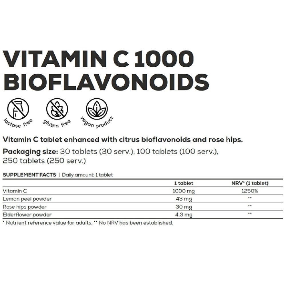 BioTech USA Vitamin C 1000 100 таблеток — это высокодозированный витамин C (1000 мг в порции), необходимый для поддержки иммунной системы, защиты клеток от окислительного стресса и общего укрепления организма.