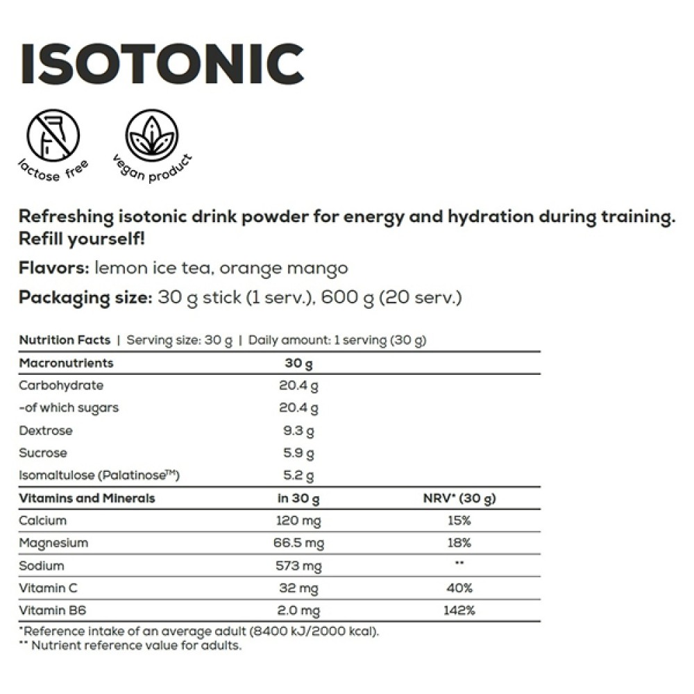 Изотоник содержит углеводы и электролиты, которые способствуют поддержанию энергии и нормальной работы мышц во время занятий спортом. Благодаря этому напиток помогает дольше сохранять работоспособность, уменьшает чувство усталости и поддерживает эффективность тренировочного процесса.